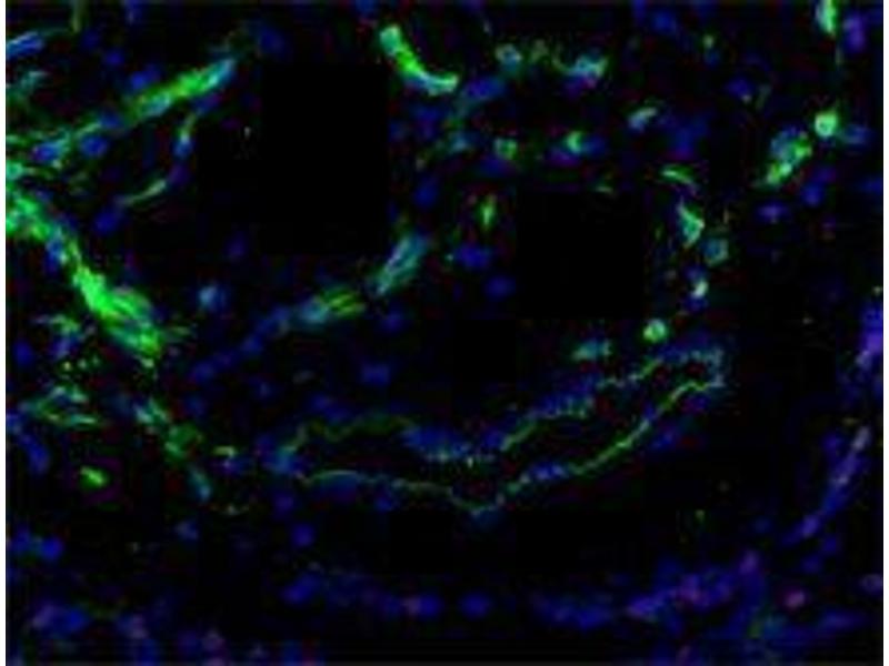 VEGFR-3, also known as FLT4, is a member of the Tyr protein kinase family. The extracellular portion of VEGFR-3 contains 7 immunoglobulin (Ig)-like domains and the cytoplasmic portion contains a protein kinase domain. FLT4 regulates angiogenesis and lymphangiogenesis, its ligands are VEGF-C and D and its binding is mediated by the 2nd and 3rd Ig-like domains of FLT4. During fetal development VEGFR-3 is expressed on endothelial cells, however, in the adult mice, the vascular endothelial cells lose VEGFR-3 expression, but the lymphatic endothelium expresses it constitutively. In addition, VEGFR-3 expression can be induced in tumors with active angiogenesis.