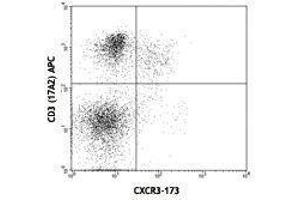 - CD183, also known as CXCR3, is a member of the C-X-C chemokine family, characterized by a pair of cysteine residues separated by a single amino acid. CXCR3 is a 38 kD seven pass transmembrane receptor coupled to G-protein. It mediates Ca2+ mobilization and chemotaxis in response to C-X-C chemokines, such as IP10 (CXCL10), MIG (CXCL9), I-TAC (CXCL11) and PF4 (CXCL4). CXCR3 is expressed primarily on activiated T lymphocytes, NK cells, and some epithelial cells and endothelial cells. It is not expressed on B cells, monocytes, or granulocytes.