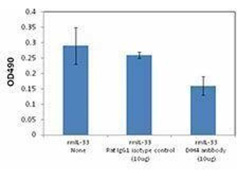 - IL-33Ra, also known as ST2 or IL-1RL1 is a member of the Toll/IL-1 receptor family. It binds IL-33 and is structurally similar to IL-1R1. Two forms of the protein exist - soluble form known as ST2 and membrane anchored form known as ST2L. The membrane form is expressed by Th2 cells and bone marrow derived mast cells whereas the soluble form is expressed by serum-stimulated fibroblasts. Blocking with anti-ST2 antibodies has been shown to alleviate experimental arthritis and airway inflammation. The IL-33-ST2 axis has been reported to be important across a range of diseases including asthma, allergies and cardiac disease.