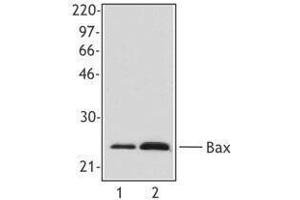 - Bax is a 21 kD pro-apoptotic protein known to regulate apoptosis. Bax is found in the cytoplasm, mitochondria, and nucleus and is highly expressed in hematopoietic stem cells, ovaries, and lymph nodes. Bax binds the anti-apoptotic protein Bcl-2 as a heterodimer or forms homodimers. The relative levels of pro-apoptotic proteins such as Bax and anti-apoptotic proteins such as Bcl-2 determines whether cell death will occur following an apoptotic stimulus. Bax accelerates the opening of mitochondrial VDAC altering membrane potential and allowing cytochrome c to pass out of the mitochondria into the cytosol to initiate downstream caspase activation. p53 can transcriptionally activate the Bax gene to induce apoptosis. Bax has been shown to be mutated in some human cancers.