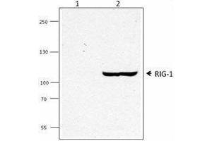 RIG-1/DDX58(Retinoic acid-inducible gene 1 protein/ DEAD-box protein 58) is an RNA helicase that belongs to the DEAD/H box. Contains 2 CARD domains, a helicase ATP-binding domain and a helicase C-terminal domain. Predicted molecular weight approximately 107 kD. RIG-1 has an essential function in double-stranded RNA-induced innate antiviral responses. RIG-1 and MDA5 (melanoma differentiation-associated gene 5) are key intracellular receptors that sense intracellular viral infection and trigger a signal forinnate antiviral responses including the production of typeI IFN. Clone SS1A has been shown to be useful for western blotting of the mouse RIG-1 protein.