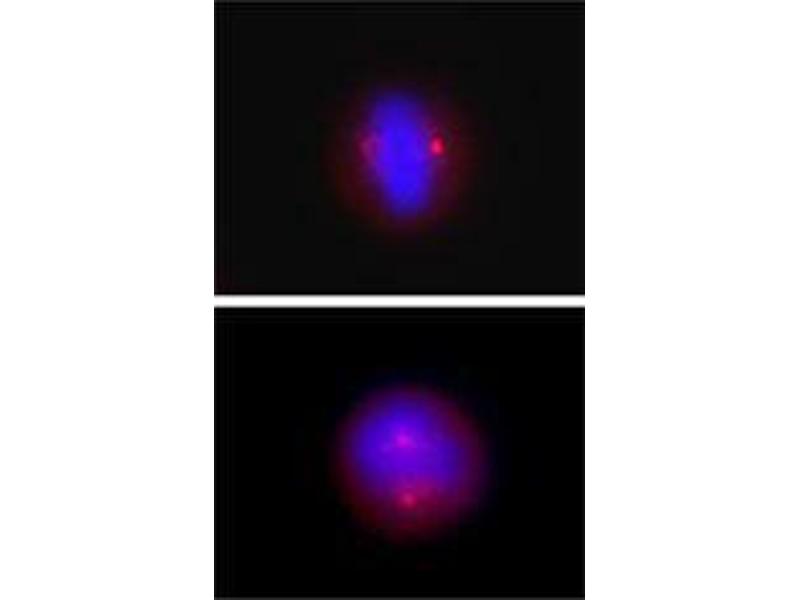 γ-tubulin is a 51 kD member of the tubulin superfamily and is conserved between yeast and mammals. This cytoskeletal protein is highly expressed in centrosomes and is thought to be involved in cytoskeletal organization and mitosis. γ-tubulin is expressed at highest levels during prophase to metaphase and can be modified by phosphorylation. This protein has been shown to interact with α-tubulin, paxillin, and RAC GTPase activated protein 1.