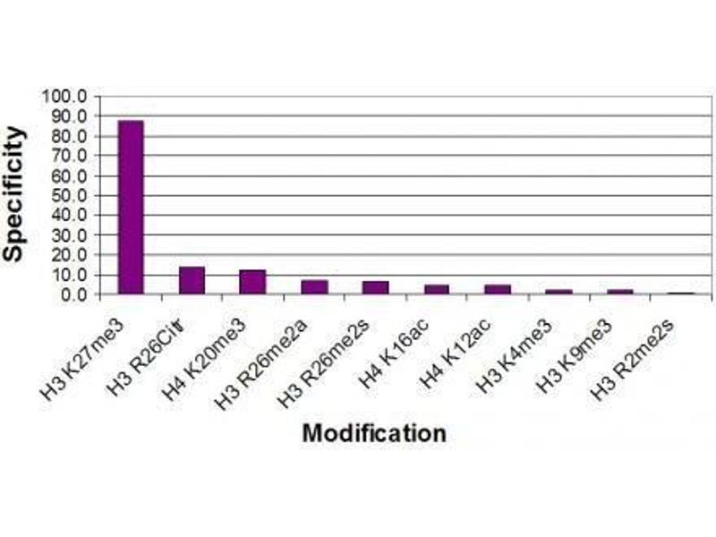 - This Histone H3 trimethylLys27 antibody was raised against a peptide including trimethyllysine 27 of histone H3. testing
