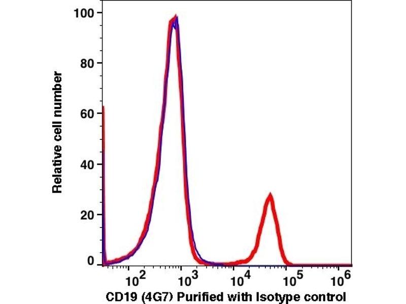 - The clone 4G7 recognizes a 90- kDa CD19 antigen that is present on human B lymphocytes. The CD19 antigen is present on approximately 7 to 23 % of human peripheral blood lymphocytes at all stages of B cell maturation but is lost on terminally differentiated plasma cells. CD19 does not react with resting or activated T lymphocytes, granulocytes, or monocytes.