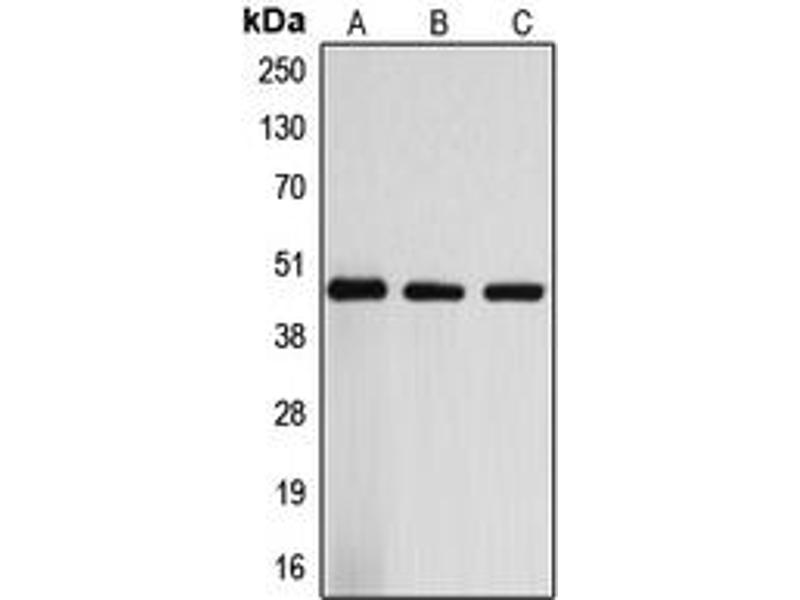 Der Kaninchen Polyklonal anti-ARRDC3 Antikörper wird verwendet zum Nachweis von ARRDC3 in Proben von Human, Maus, Ratte und Affe. Er wurde validiert für WB und IHC.