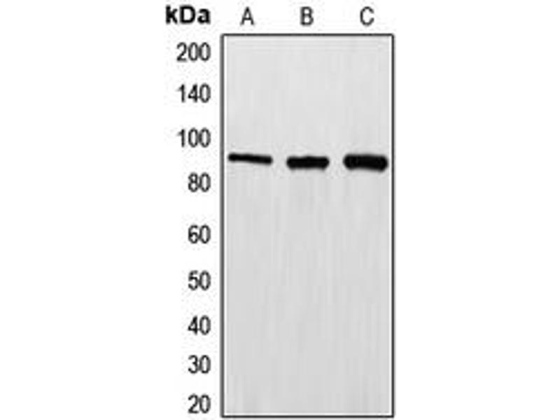 Der Kaninchen Polyklonal anti-EWSR1 Antikörper (ABIN7295622) detektiert spezifisch EWSR1 in WB.