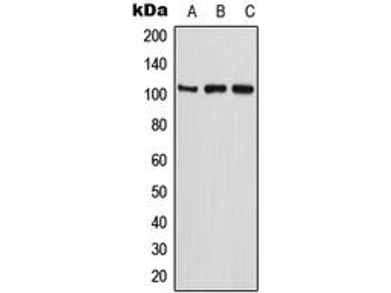 Der Kaninchen Polyklonal anti-ETAA1 Antikörper (ABIN7298200) detektiert spezifisch ETAA1 in WB.