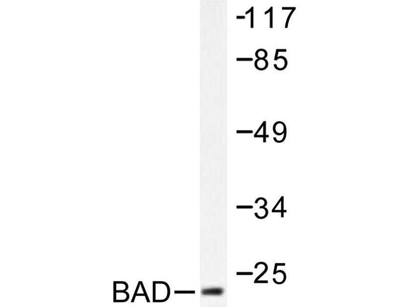 Bad is a member of the Bcl2 family and acts to promote apoptosis by forming heterodimers with the survival proteins Bcl2 and BclxL, thus preventing them from binding with BAX. Bad is found on the outer mitochondrial membrane and, once phosphorylated in response to growth stimuli, translocates to the cytoplasm. The phosphorylation status of Bad represents a key checkpoint for death or cell survival. JNK-induced phosphorylation of BAD serine 128 promotes the apoptotic role of Bad by opposing the inhibitory effect of growth factor on Bad-mediated apoptosis. Cdc2-induced phosphorylation of Bad serine 128 has an inhibitory effect on its interaction with 14-3-3 proteins. The latter interaction is critical for Bad phosphorylation at serine 155, a site within the BH3 domain that leads to the release of BclxL and the promotion of cell survival. Alternative splicing of this gene results in two transcript variants which encode the same isoform.Synonyms: BAD, BBC6, BCL2L8, Bcl-2-binding component 6, Bcl-2-like protein 8, Bcl-XL/Bcl-2-associated death promoter, Bcl2 antagonist of cell death, Bcl2-L-8