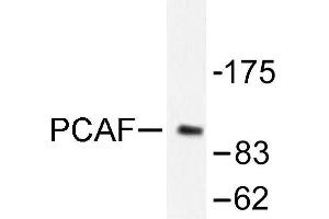 In the intact cell, DNA closely associates with histones and other nuclear proteins to form chromatin. The remodeling of chromatin is believed to be a critical component of transcriptional regulation and a major source of this remodeling is brought about by the acetylation of nucleosomal histones. Acetylation of lysine residues in the amino-terminal tail domain of histone results in an allosteric change in the nucleosomal conformation and an increased accessibility to transcription factors by DNA. Conversely, the deacetylation of histones is associated with transcriptional silencing. Several mammalian proteins have been identified as nuclear histone acetylases, including GCN5, PCAF (for p300/CBP-associated factor), p300/CBP and the TFIID subunit TAFII p250. Mammalian HDAC1 (also designated HD1) and HDAC2 (also designated mammalian RPD3), both of which are related to the yeast transcriptional regulator Rpd3p, have been identified as histone deacetylases.Synonyms: Histone acetylase PCAF, Histone acetyltransferase KAT2B, Histone acetyltransferase PCAF, Lysine acetyltransferase 2B, P/CAF, P300/CBP-associated factor