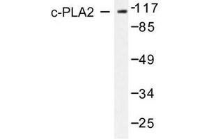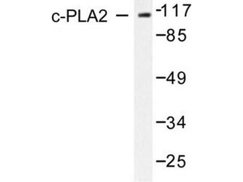 Phospholipase A2s (PLA2s) constitute a family of esterases that hydrolyze the sn-2-acyl ester bond in glycerophospholipid molecules. These enzymes are generally calcium-dependent and have been found both intra- and extracellularly. By hydrolyzing the sn-2 bond in glycerophospholipids, PLA2s release fatty acids. One such fatty acid, arachidonic acid, generates the substrates for the initiation of the arachidonic acid cascade that produces various eicosanoids (i.e. prostaglandins, leukotrienes and thromboxanes), many of which are potent mediators of inflammation. PLA2s include both the relatively low molecular weight type I and type II enzymes and the form known as cytoplasmic PLA2 (cPLA2). cPLA2 is present in the cytosol of various cells and tissues including platelets, macrophages and monoblasts, and preferentially hydrolyzes the sn-2 position of phospholipid molecules, releasing free arachidonate.Synonyms: Cytosolic phospholipase A2 beta, Phospholipase A2 group IVB, cPLA2-beta, phospholipase A2 beta