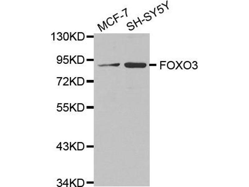 Der Kaninchen Polyklonal Anti-FOXO3-Antikörper wurde für WB validiert. Er ist geeignet, FOXO3 in Proben von Human und Maus zu detektieren.