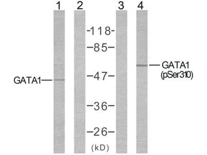 Der Kaninchen Polyklonal anti-GATA1 Antikörper (ABIN273793) detektiert spezifisch GATA1 in WB.