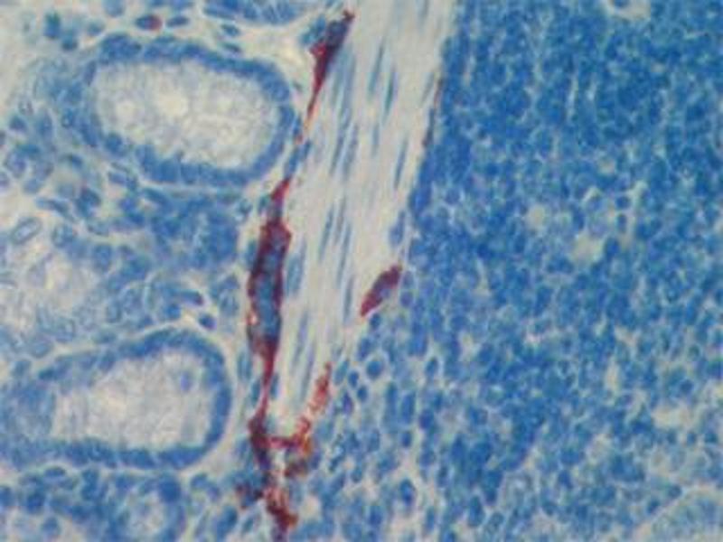 LYVE-1 has been identified as a major receptor for HA (extracellular matrix glycosaminoglycan hyaluronan) on the lymph vessel wall. Like CD44, the LYVE-1 Molecule binds both soluble and immobilized HA. However, unlike CD44, the LYVE-1 Molecule co-localizes with HA on the luminal face of the lymph vessel wall and is completely absent from blood vessels. Hence, LYVE-1 is the first lymph-specific HA receptor to be characterized and is a uniquely powerful marker for lymph vessels themselves.