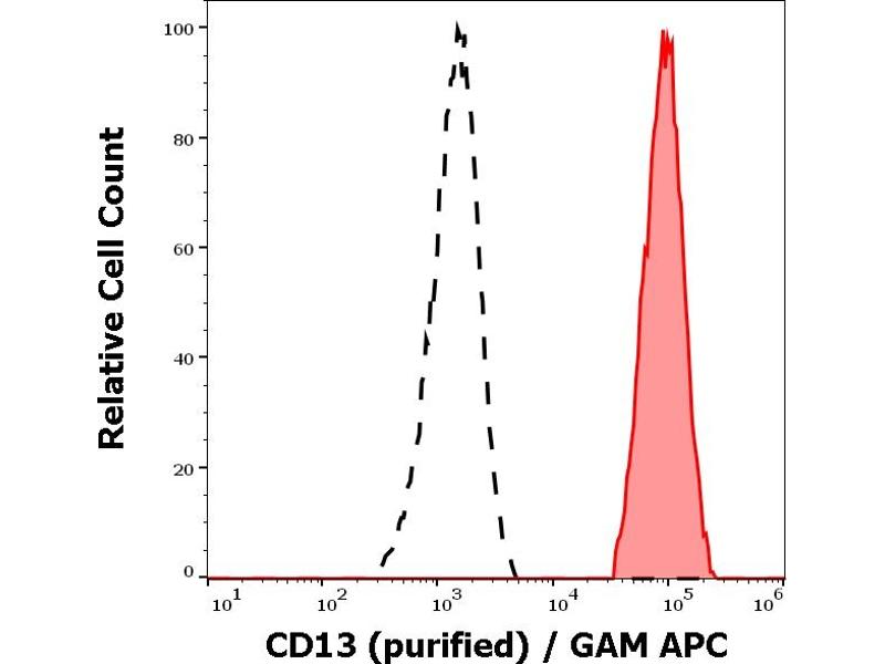 Functional application: The antibody WM15 inhibits infection of cells by human coronavirus and inhibits aminopeptidase N activity of the CD13 Molecule immunoprecipitates. Flow cytometry: Recommended dilution: 1-4 μg/mL.