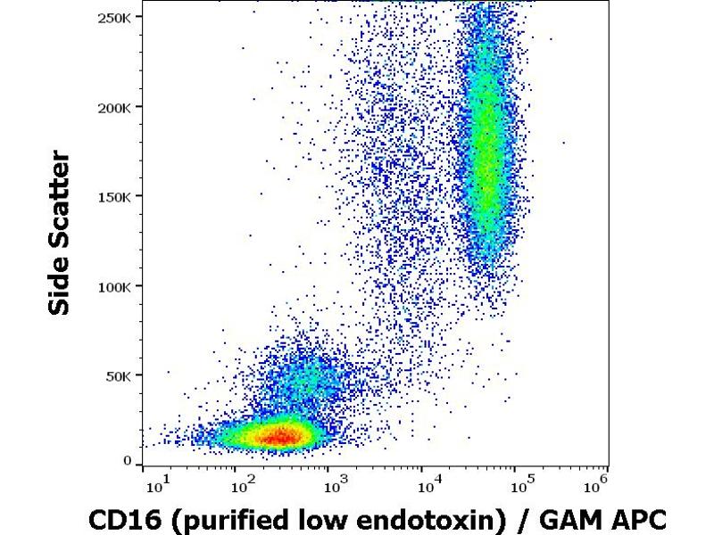 - CD16 (FcgammaRIII) is a 50-65 kDa glycoprotein serving as a low affinity IgG receptor. Human FcgammaRIII is expressed in two forms –, FcgammaRIII-A and -B. FcgammaRIII-A is a transmembrane protein of monocytes, macrophages, NK cells and a subset of T cells. It is associated with FcepsilonRI-gamma subunit and is responsible for antibody-dependent NK cell cytotoxicity. Mast cell FcgammaRIII-A is associated, moreover, with FcepsilonRI-beta subunit. Besides IgG, FcgammaRIII-A can be triggered also by oligomeric IgE. FcgammaRIII-B is a GPI-linked monomeric receptor expressed on neutrophils and is involved in their activation and induction of a proadhesive phenotype.,FcgammaRIII, IGFR3, FCRIII
