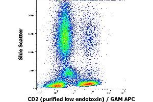The mouse monoclonal antibody TS1/8 recognizes an extracellular epitope of CD2, a 50 kDa glycoprotein present on the human peripheral blood T lymphocytes and NK cells, also expressed by all thymocytes.
