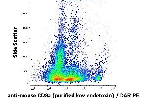 Functional application: Isolation and depletion of CD8+ cells, blocking of cytotoxicity, inhibition of CD8+ T cell proliferation. Flow cytometry: Recommended dilution: 1.5 μg/mL. Immunohistochemistry (frozen sections): Recommended dilution: 1:1000, formaldehyde fixation is not recommended, acetone fixation is preferred.