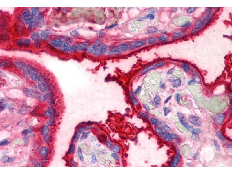 Immunohistochemistry (paraffin sections): Recommended dilution: 10 μg/mL, positive tissue: placenta.