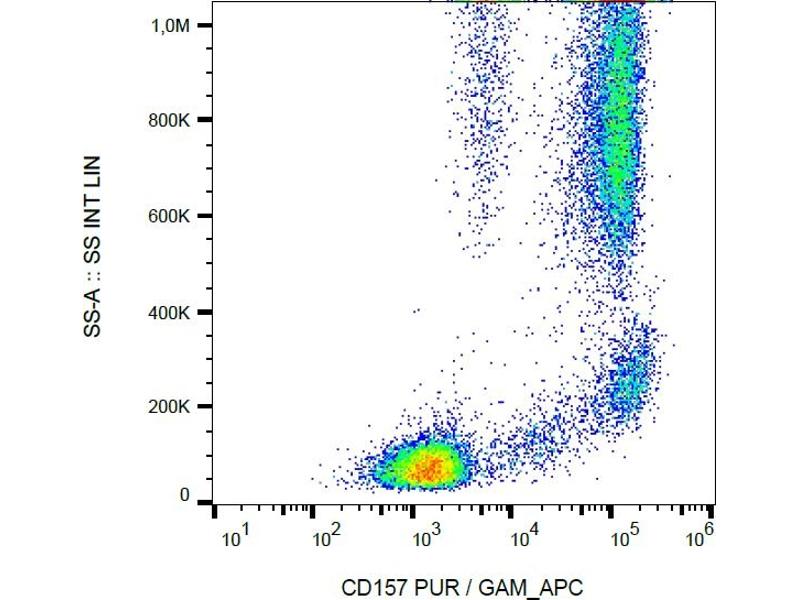The mouse monoclonal antibody SY11B5 recognizes CD157, an approximately 45 kDa GPI-anchored extracellular protein expressed mainly on monocytes, macrophages, granulocytes and bone marrow stromal cells.