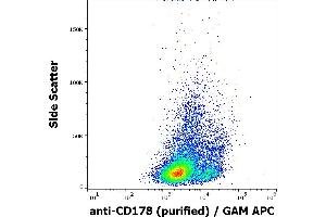 Fas ligand,CD178 / Fas-L (Fas ligand, CD95L), a member of TNF family transmembrane glycoproteins, is responsible for induction of apoptosis in cells containing its receptor CD95 / Fas. The CD178-mediated apoptosis pathway has been implicated in peripheral tolerance, tissue pathology, and maintenance of the immune privileged sites. Defects in this interaction may be related to some cases of systemic lupus erythematosus (SLE). CD178 was also described as a co-stimulatory receptor for T-cell activation in mice in vivo.,APTL, FASL, FAS-ligand, CD95L, TNFSF6, TNLG1A