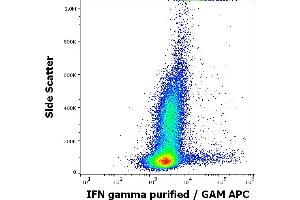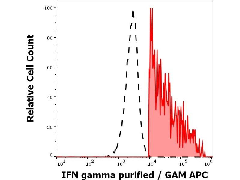 The mouse monoclonal antibody 4S.B3 recognizes IFN-gamma, a 16-25 kDa cytokine produced by activated Th1 cells and NK cells. Binds both glycosylated and non-glycosylated protein.