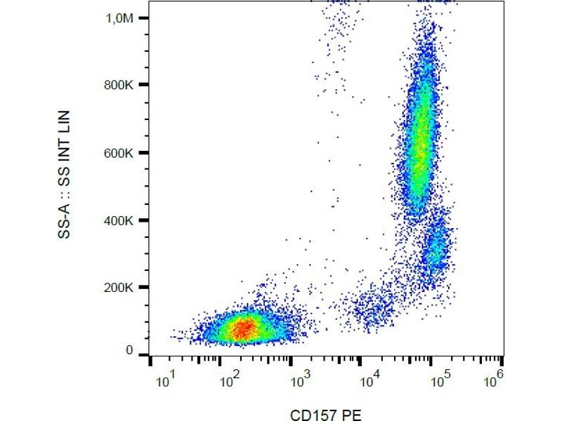 The mouse monoclonal antibody SY11B5 recognizes CD157, an approximately 45 kDa GPI-anchored extracellular protein expressed mainly on monocytes, macrophages, granulocytes and bone marrow stromal cells.