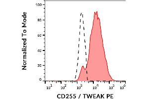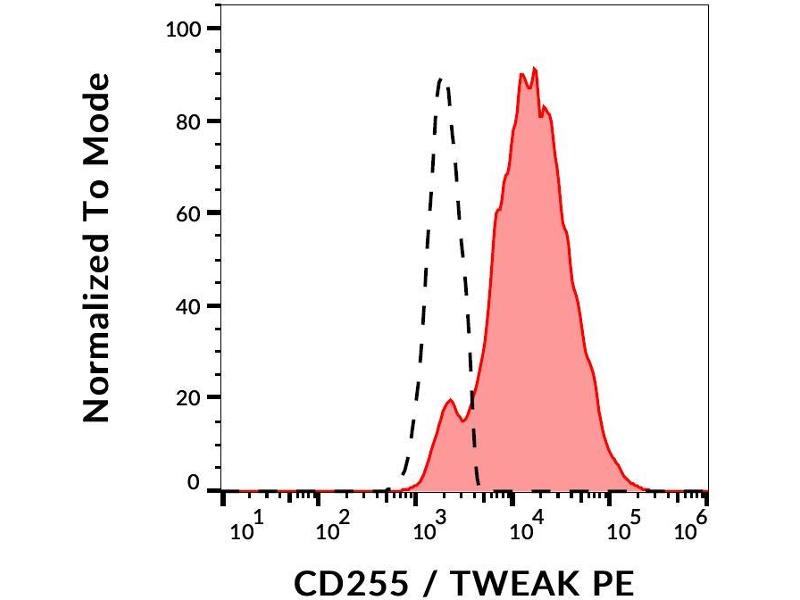 The mouse monoclonal antibody CARL-1 recognizes an extracellular epitope of CD255 / TWEAK, a type II transmembrane protein of the TNF superfamily able to induce apoptosis weakly in many cell types.