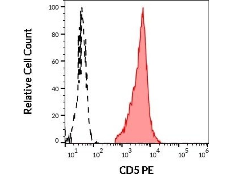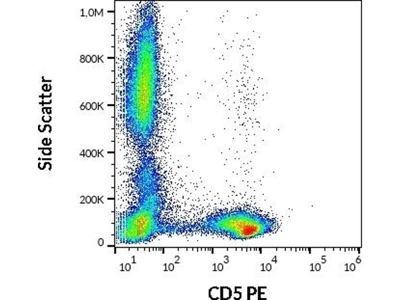 CD5 Molecule,CD5 antigen (T1, 67 kDa) is a human cell surface T-lymphocyte single-chain transmembrane glycoprotein. CD5 is expressed on all mature T-lymphocytes, most of thymocytes, subset of B-lymphocytes and on many T-cell leukemias and lymphomas. It is a type I membrane glycoprotein whose extracellular region contains three scavenger receptor cysteine-rich (SRCR) domains. The CD5 is a signal transducing molecule whose cytoplasmic tail is devoid of any intrinsic catalytic activity. CD5 modulates signaling through the antigen-specific receptor complex (TCR and BCR). CD5 crosslinking induces extracellular Ca++ mobilization, tyrosine phosphorylation of intracellular proteins and DAG production. Preliminary evidence shows protein associations with ZAP-70, p56lck, p59fyn, PC-PLC, etc. CD5 may serve as a dual receptor, giving either stimulatory or inhibitory signals depending both on the cell type and development stage. In thymocytes and B1a cells it seems to provide inhibitory signals, in peripheral mature T lymhocytes it acts as a costimulatory signal receptor. CD5 is the phenotypic marker of a B cell subpopulation involved in the production of autoreactive antibodies. Disease relevance: CD5 is a phenotypic marker for some B cell lymphoproliferative disorders (B-CLL, Hairy cell leukemia, etc.). The CD5+ popuation is expanded in some autoimmune disorders (rheumatoid arthritis, etc.). Herpes virus infections induce loss of CD5 expression in the expanded CD8+ human T cells.,T1, LEU1