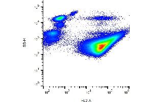 Flow cytometry: The reagent is designed for analysis of human blood cells using 10 μL reagent / 100 μL of whole blood or 106 cells in a suspension. The content of a vial (1 ml) is sufficient for 100 tests.