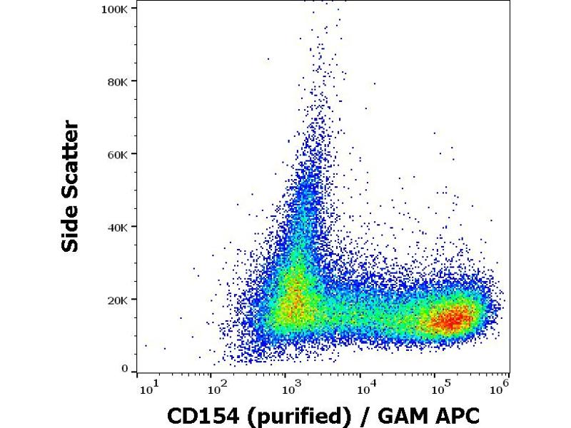 The mouse monoclonal antibody 24-31 detects an extracellular epitope of CD154 / CD40L (CD40-ligand), a 39 kDa cell surface type II glycoprotein expressed predominantly on activated CD4+ lymphocytes.