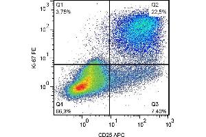 Flow cytometry: The reagent is designed for analysis of human blood cells using 10 μL reagent / 100 μL of whole blood or 106 cells in a suspension. The content of a vial (1 ml) is sufficient for 100 tests. Intracellular staining.