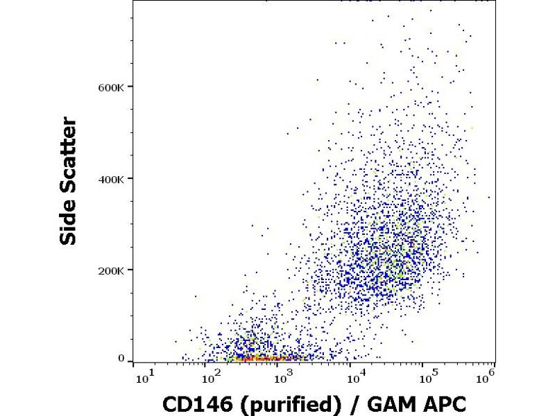 The mouse monoclonal antibody P1H12 recognizes an extracellular epitope of CD146, a 118 kDa transmembrane glycoprotein expressed on epithelial and endothelial cells, fibroblasts, multipotent mesenchymal stromal cells, melanoma cells, activated T cells and activated keratinocytes.