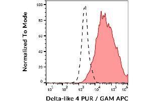 The mouse monoclonal antibody MHD4-46 recognizes the extracellular domain of DLL4 (Delta-like ligand 4), a type I transmembrane protein which plays an important role in vascular development.