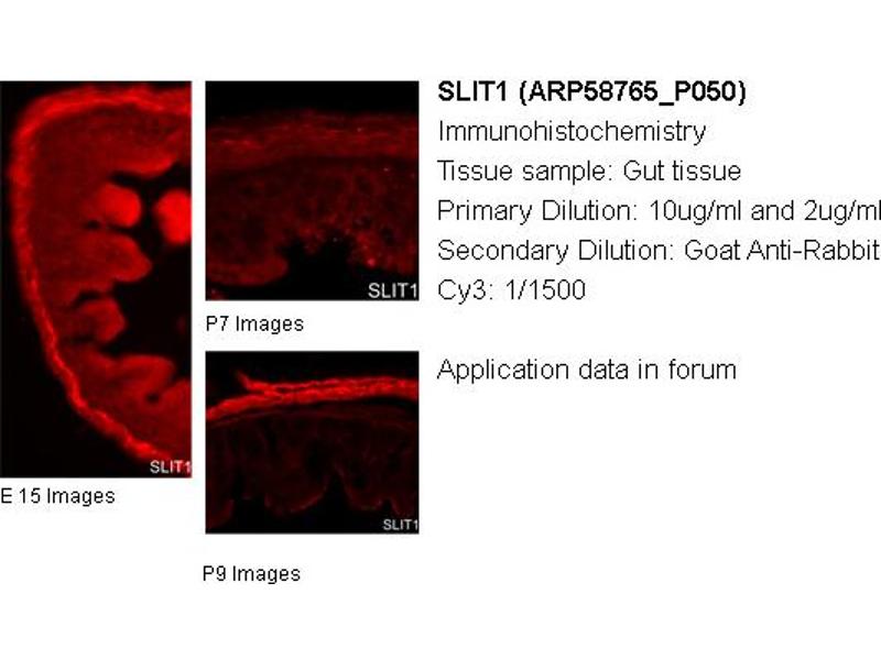 - The immunogen is a synthetic peptide directed towards the middle region of human SLIT1