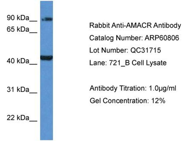 - This is a rabbit polyclonal antibody against AMACR. It was validated on Western Blot.