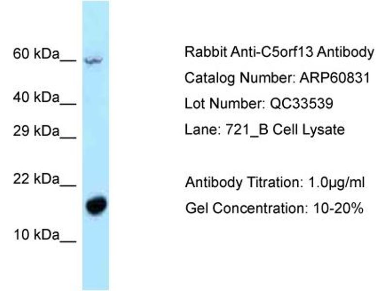 - This is a rabbit polyclonal antibody against C5orf13. It was validated on Western Blot.