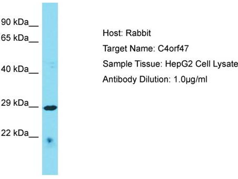 This is a rabbit polyclonal antibody against C4orf47. It was validated on Western Blot.