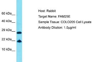 This is a rabbit polyclonal antibody against FAM25E. It was validated on Western Blot.