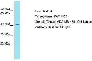 This is a rabbit polyclonal antibody against FAM153B. It was validated on Western Blot.