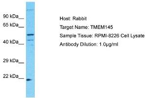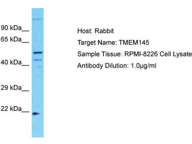 This is a rabbit polyclonal antibody against TMEM145. It was validated on Western Blot.