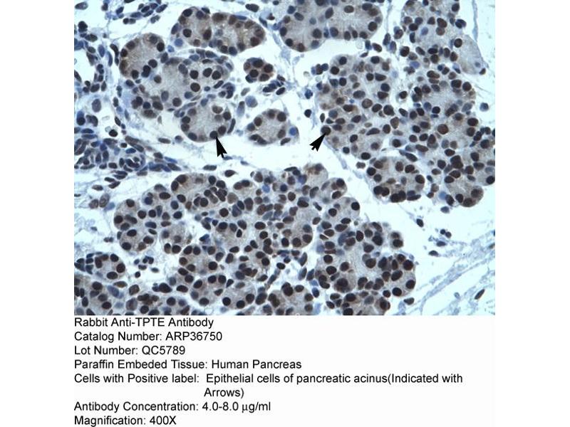 - This is a rabbit polyclonal antibody against TPTE. It was validated on Western Blot and immunohistochemistry.