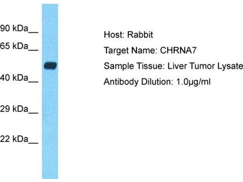 Der Kaninchen Polyklonal anti-CHRNA7 Antikörper (ABIN2774850) detektiert spezifisch CHRNA7 in WB.