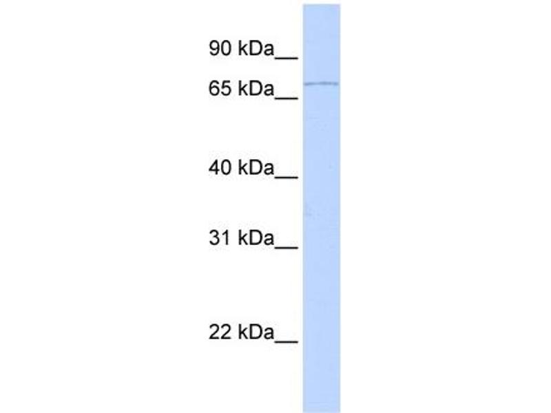 This is a rabbit polyclonal antibody against RNF6. It was validated on Western Blot using a cell lysate as a positive control.