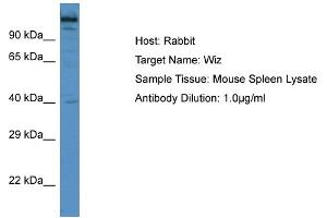 Wiz may link EHMT1 and EHMT2 histone methyltransferases to the CTBP corepressor machinery. It may be involved in EHMT1-EHMT2 heterodimer formation and stabilization. Alias Symbols: - Protein Interaction Partner: Nanog, Foxp3, EHMT2, Tfcp2l1, Esrrb, Protein Size: 956