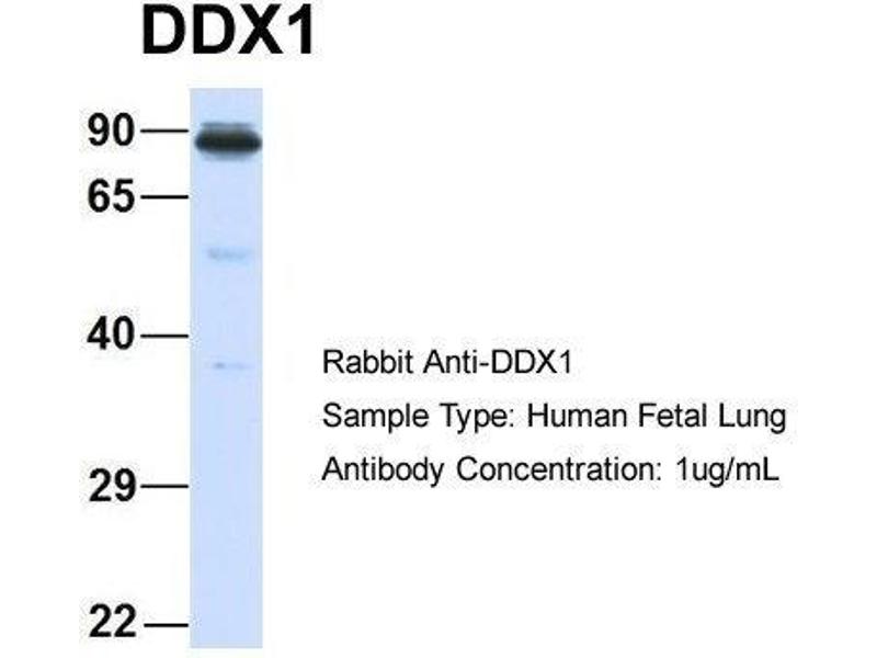 - This is a rabbit polyclonal antibody against DDX1. It was validated on Western Blot using a cell lysate as a positive control.