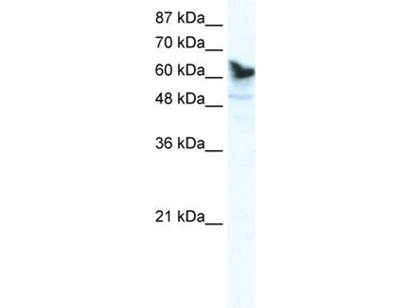 This is a rabbit polyclonal antibody against DDX41. It was validated on Western Blot using a cell lysate as a positive control.