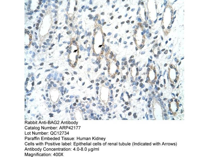 This is a rabbit polyclonal antibody against BAG2. It was validated on Western Blot and immunohistochemistry.