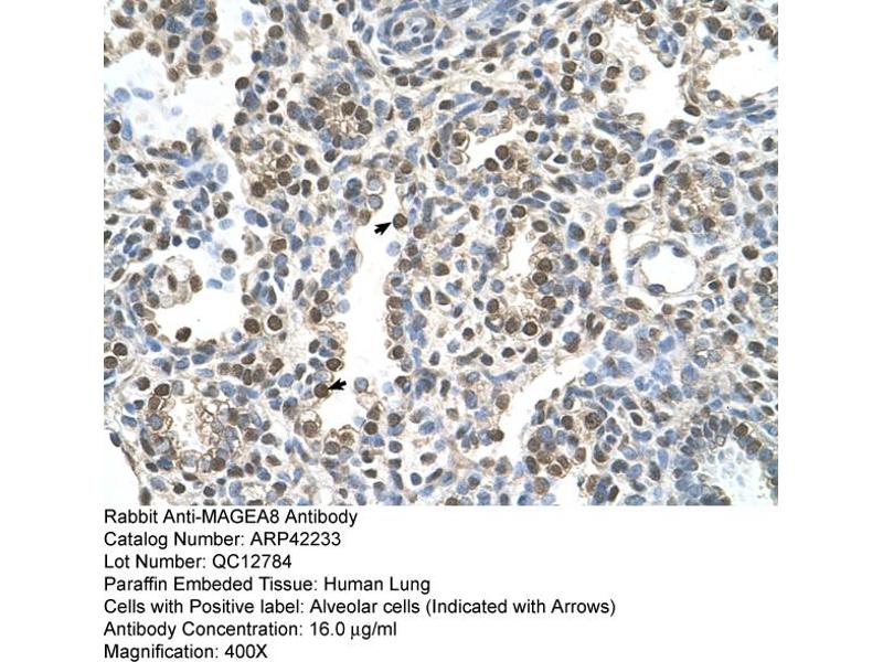 - This is a rabbit polyclonal antibody against MAGEA8. It was validated on Western Blot and immunohistochemistry.
