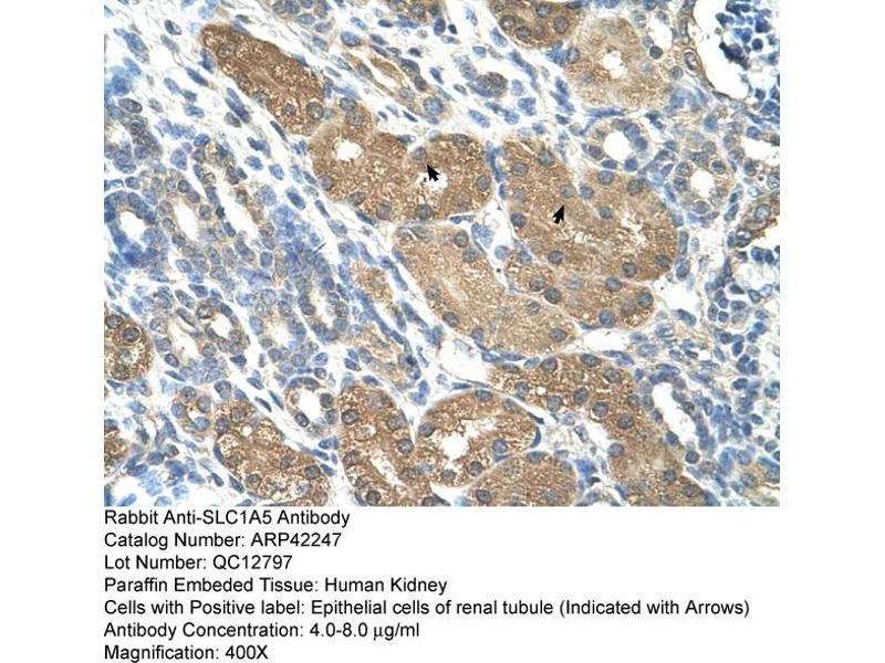 - This is a rabbit polyclonal antibody against SLC1A5. It was validated on Western Blot and immunohistochemistry.