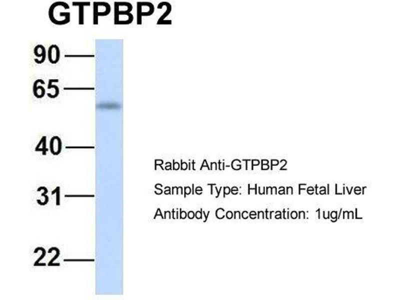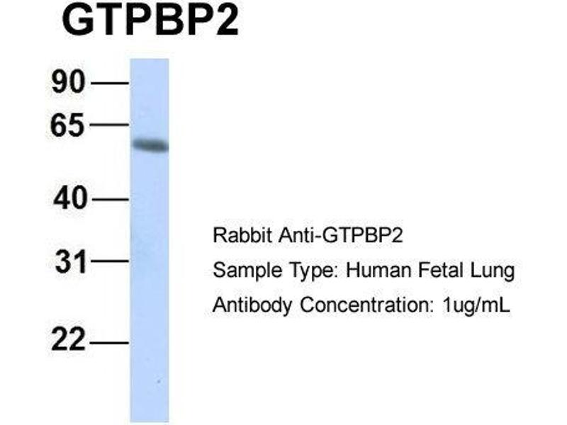 - This is a rabbit polyclonal antibody against GTPBP2. It was validated on Western Blot using a cell lysate as a positive control.